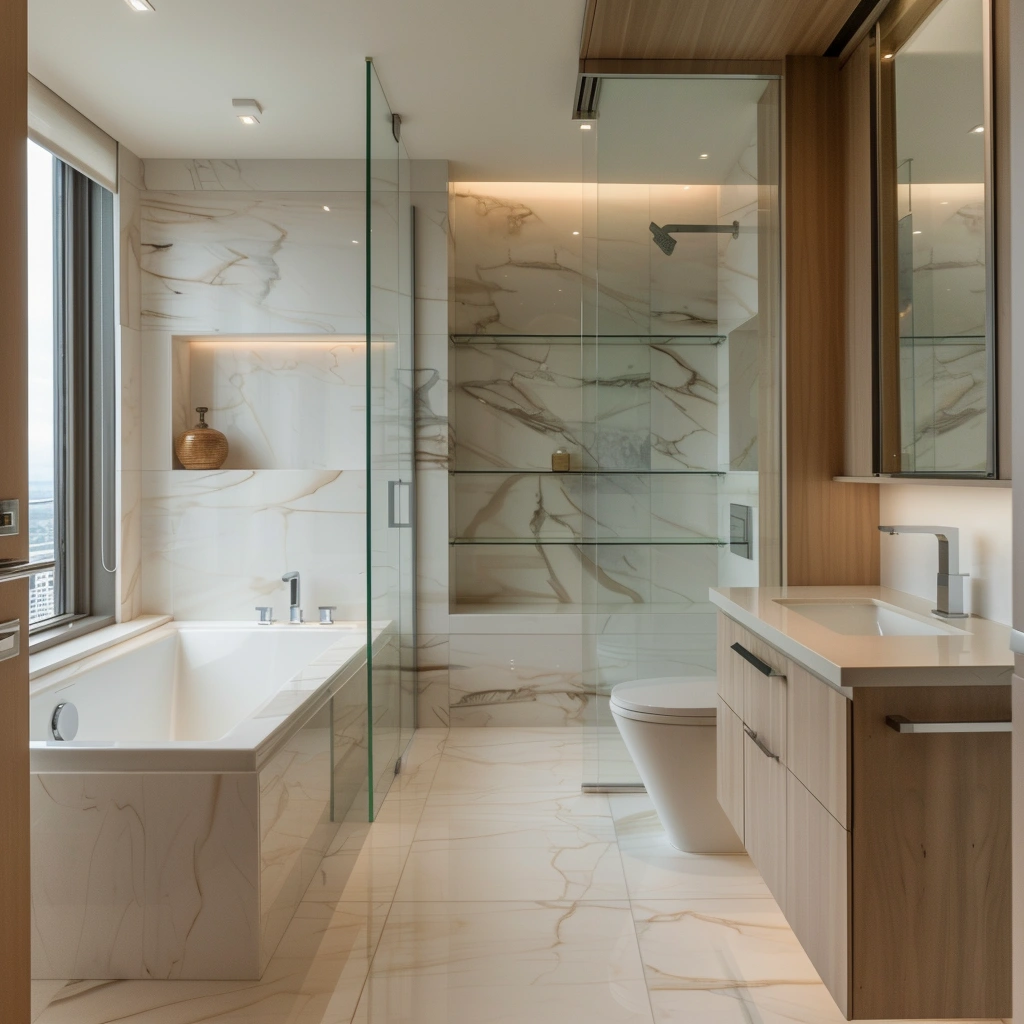 Creating a luxurious and functional bathroom with new fixtures, tiles, and shower systems.
